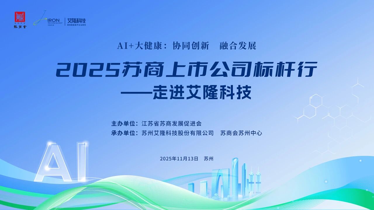 为将这一前沿探索转化为系统化、可持续的健康服务保障,11月13日,由江苏省苏商发展促进会(以下简称“苏商会”)主办、苏商会苏州中心和苏州艾隆科技股份有限公司(以下简称“艾隆科技”)承办的“2025苏商上市公司标杆行——走进艾隆科技”活动成功举办,与会嘉宾共同见证了智能科技与医疗健康碰撞带来的无限可能。
