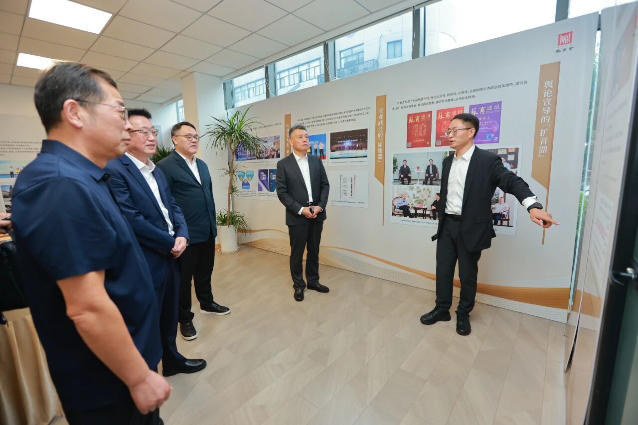 沈彬会长及联席会长南钢集团董事长黄一新、东方润安集团董事长蒋中敏、金箔集团董事局主席江楠、今世缘酒业股份有限公司董事长顾祥悦、双良集团董事长缪文彬,副会长肯帝亚集团董事长郦海星、江苏创合高新科技有限公司董事长李亚林一行视察了苏商会秘书处,并听取了秘书处对2025年前三季度的工作总结和未来工作规划。