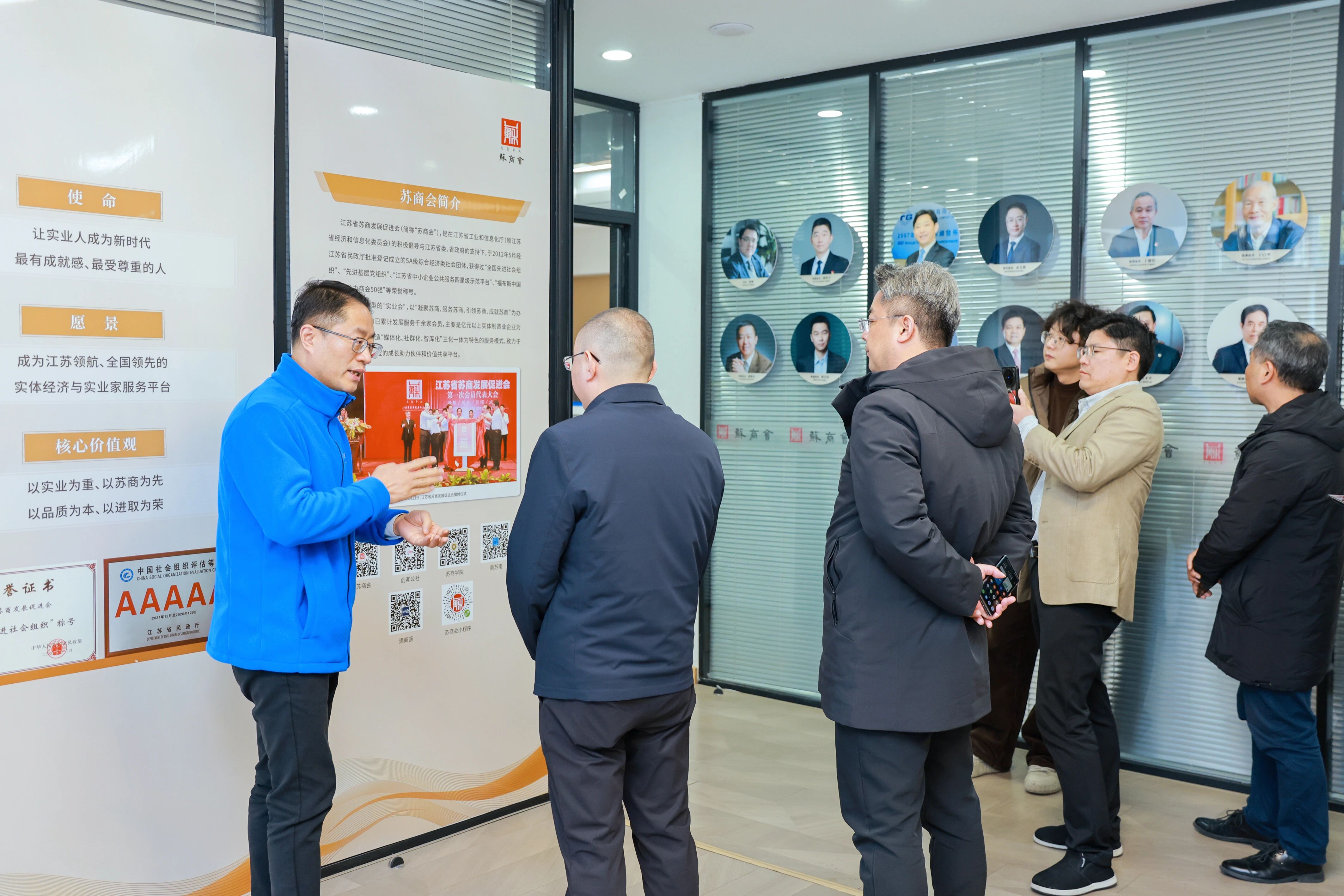 会前,俞文勤陪同李钦一行参观了苏商会秘书处,全面介绍了苏商会在企业服务、产业对接、品牌赋能等方面的实践。